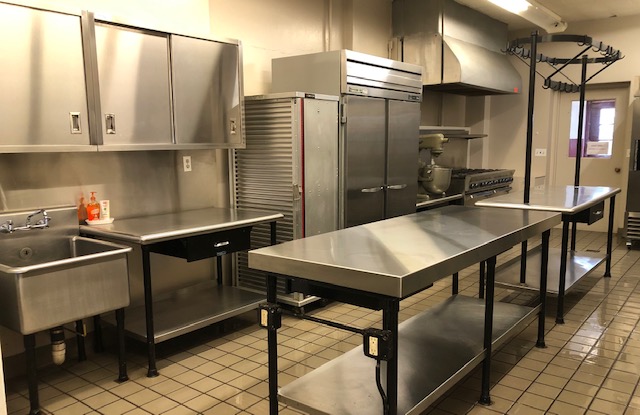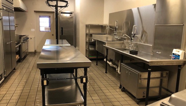During this time, we had all the plumbing to the sinks and heating unit upgraded, the dishwashing sinks were raised up, new faucets were installed at the sinks and heating unit, stainless steel cover custom made for the butcher block; stainless steel back splash put in behind all the sinks, stainless steel cabinets installed and a commercial freezer put in. It was a long process, but during COVID, we were able to have all this work done without interrupting events.