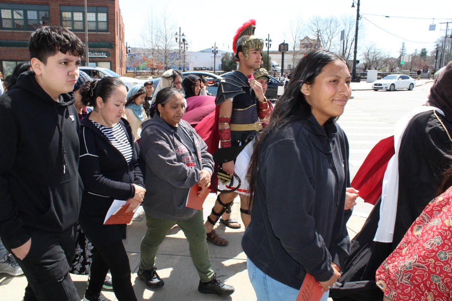 Nearly 200 people walked this journey through city streets near our two churches, with additional people stopping in their cars and others coming out of their homes to hear and see this beautiful procession.