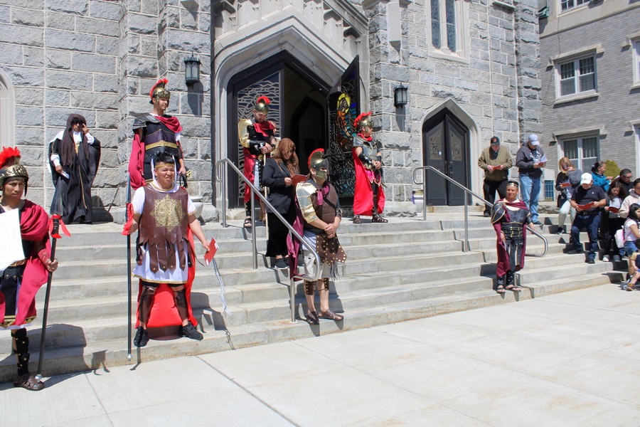 Las liturgias del Triduo Pascual de este año, que incluyeron nuestra procesión del Viernes Santo, el 18 de abril, fueron mejoradas por una increíble dramatización de las Estaciones del Viacrucis.