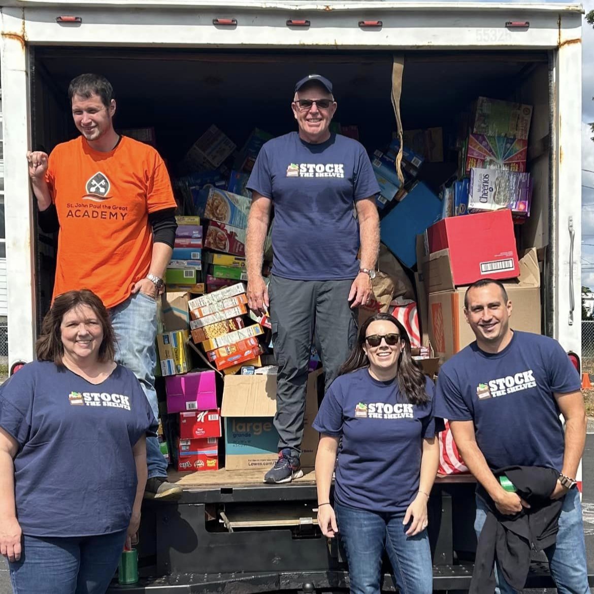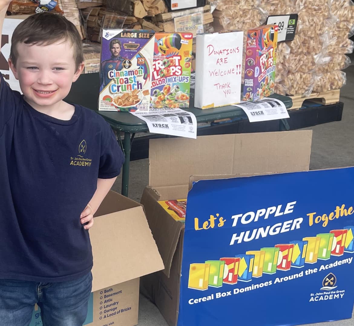 St. John Paul the Great Academy again partnered with Stock the Shelves (www.stocktheshelvesnwct.org) to acknowledge Action Hunger Day and to help those of our community in Northwest Connecticut who struggle with food insecurity. Students and teachers, Academy families, St. John Paul the Great Parish and the greater community collaborated for weeks to collect 2,415 boxes of cereal for distribution to area food banks, soup kitchens and shelters, more than doubling the 2022 cereal collection.